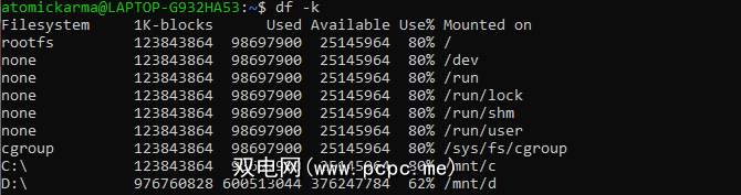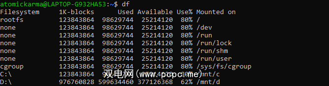 这是 df < / code>命令,在bash终端中输入。它可以以多种方式使用: