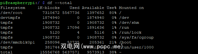 除此之外,可以稍微调整df命令以提供更易读的结果。默认情况下,输出以字节为单位。如果您知道字节与兆字节和千兆字节之间的关系,那么这对您来说可能不是问题。