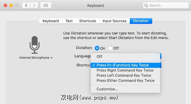 为此,请打开系统偏好设置,然后转到键盘>听写。打开快捷方式下拉菜单,然后选择要使用的听写快捷方式。要创建自己的文件,请点击自定义,然后按您想要的键盘快捷键。