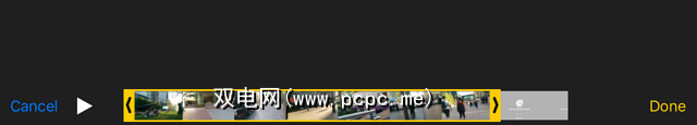 选择要修剪的视频,然后点击编辑以在底部看到时间线。拖动其末端以修剪视频,然后点击播放图标预览更改。点击完成以查看修剪原始视频的选项,或将修剪后的文件另存为新剪辑。