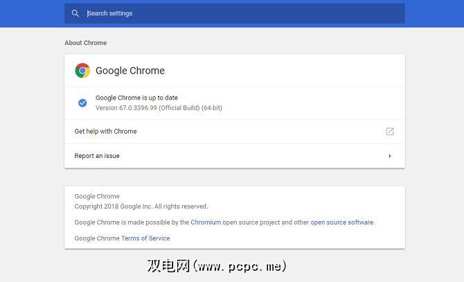 Google Chrome拥有约60%的市场份额,部分原因是人们相信它的快速响应时间。主要补丁每15天发布一次,听起来似乎有些过分,但是此浏览器是网络罪犯的主要攻击目标,因此需要定期修复。点击屏幕右上角的垂直椭圆,然后点击帮助>关于Google Chrome 。如果有可用更新,则应从此处自动安装。