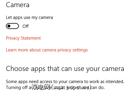 在Windows 10中,转到开始并输入 webcam ,然后单击 Webcam隐私设置。找到标有让应用使用我的相机的开关,然后将此设置设为关闭。但是,这只会影响现代的Windows Store风格的应用程序。