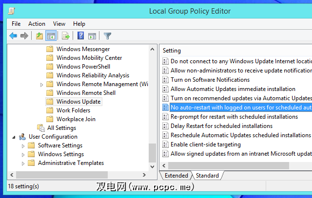 导航到左侧的以下文件夹窗格:Computer Configuration \ Administrator模板\ Windows组件\ Windows Update