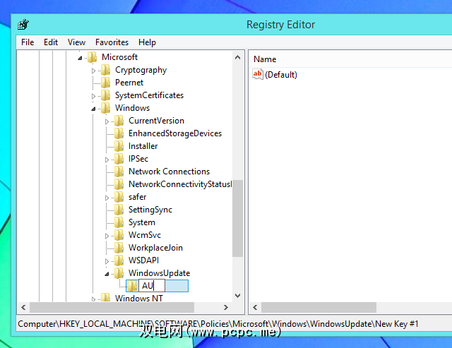 为此,请右键单击Windows键,指向“新建",然后选择“键"。键入 WindowsUpdate ,然后按Enter。然后,右键单击WindowsUpdate项,指向“新建",然后选择“项"。键入 AU ,然后按Enter。这将创建正确的注册表项结构。