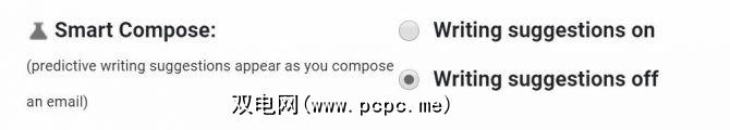 要关闭 Smart Compose ,请转到“设置",然后在“常规"标签上向下滚动以查找该功能,然后选择撰写建议关闭。