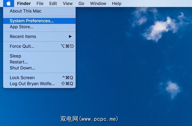 首先,请点击 Apple菜单,然后选择系统偏好设置。