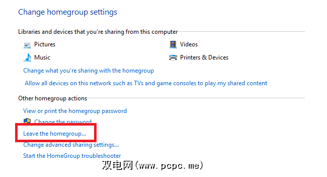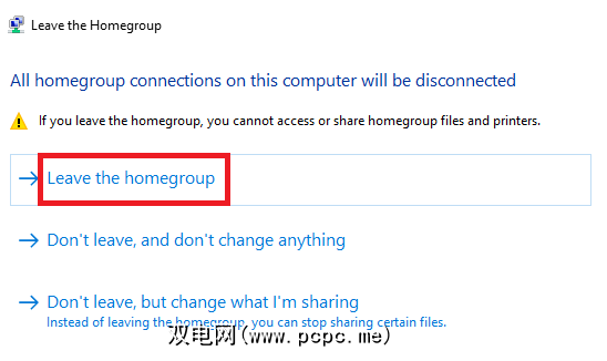如果您已经在家庭组中,则会看到一个名为离开家庭组的选项。点击链接,然后再次选择离开家庭组,以确认您的选择。单击完成完成该过程。