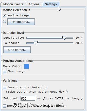 如果您发现脚本未获取启动或运动检测似乎不起作用(或者它太灵敏),请确保检查YawCam中的“ 设置"标签。确保公差足够高,以至于它不太敏感,并确保灵敏度足够高,以便当您坐在计算机前时可以拾取。
