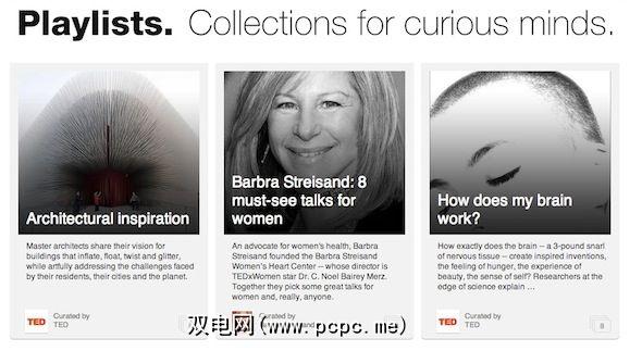 如果您想扩大视野或了解其他人在TED上正在观看什么,则播放列表是查找推荐视频的好方法。