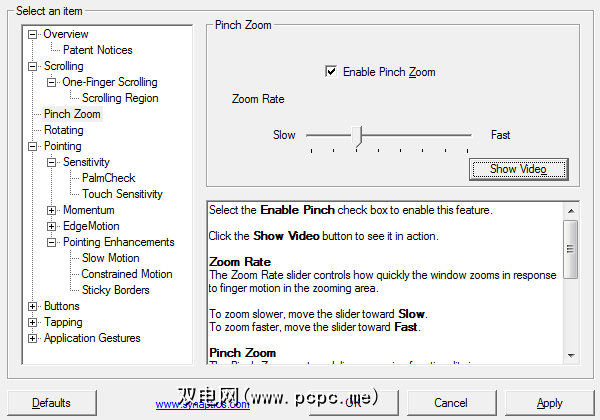 Synaptics触摸板具有许多功能和选项,许多用户完全不知道。例如,您可以通过在触摸板的右侧和底部设置敏感区域来启用垂直和水平滚动。或者,您可以应用ChiralMotion滚动,即无限滚动。 Synaptics TouchPad还支持“捏缩放",这意味着您可以用两根手指来放大和缩小网页,文档或图片。所有功能都得到了详尽的说明,并且许多功能都带有无缝的演示视频。