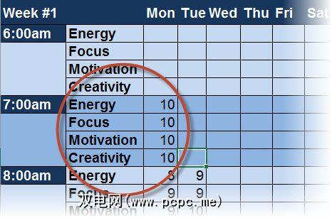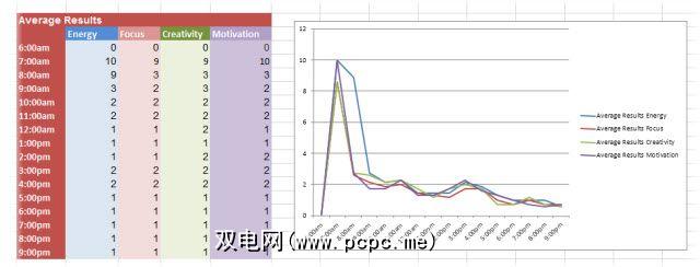 使用电子表格应该非常直观。从您醒来或开始工作(由您决定)的那一刻起,就开始每小时每小时追踪您的精力,专注力,动机和创造力。设置警报以提醒自己执行此操作。每小时只需要20到30秒左右。