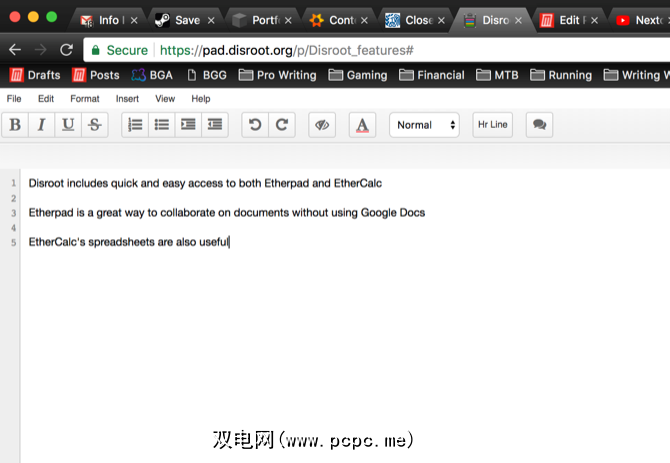 您是否喜欢Google能够读取保存在其中的所有文档的想法Google云端硬盘?如果没有,您会喜欢Disroot与EtherPad和EtherCalc的合作关系。这两个应用程序都可以让您实时创建,共享和编辑文档和电子表格。