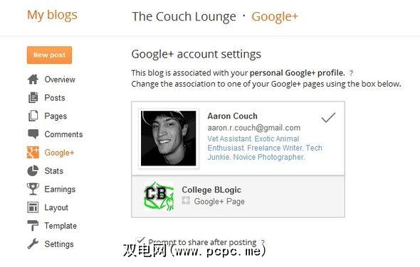 设置起来实际上很简单。登录到Blogger后,请点击博客旁边的下拉箭头,然后选择“ Google +"。