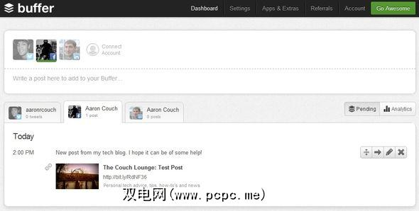 Nancy在她关于使用Buffer和其他一些应用程序安排推文的文章的末尾实际上也提到了这一点,在介绍IFTTT和Buffer时,我也链接了该文章。基本上,您希望在共享链接和实际成为在线对象之间保持良好的平衡。您不想在短时间内大量发布数百个链接。缓冲实际上可以帮助您避免这样做,但是,您仍然希望与链接共享自己的想法。这也适用于博客文章。一些自动发布服务,例如带有Twitter的Tumblr,可让您根据自己的想法自定义帖子。如果您是通过Buffer发帖的,则通常需要一段时间才能发布该帖子,这样您就可以将自己的文字多编辑一些。这些只是在探索自动发布服务和方法时需要注意的一些建议。