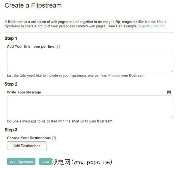 如果您熟悉Bit.ly的功能,Flipstream类似于Bit.ly Bundles,您可以在其中添加多个链接,分享有关它们的信息,然后将其发布到多个社交网络。与Bit.ly相比,使用Dlvr.it进行此功能的唯一优势是目的地更多。