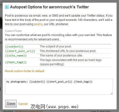 不幸的是,Posterous确实缺乏编辑推文外观的功能。文本编辑器本身,尽管您可以在“自动发布设置"页面中自定义推文的一般显示方式。