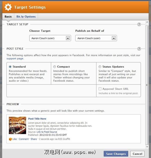 调整目标设置是您可以在其中更改提要的位置和发布者的位置(即Facebook页面或用户)
