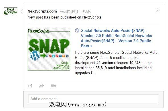 SNAP是一个WordPress插件,提供各种社交网络发布到:Facebook,Twitter,LinkedIn,Blogger,Tumblr,甚至Pinterest和Google+。它允许您发布以发布到个人资料和页面。不过,在让您兴奋不已之前,我无法不带您进一步说,要让Google+和Pinterest工作,您需要一个特殊的库模块。容易吧?好吧...我也这么认为。实际上,我打算将整个帖子专用于此插件,直到我意识到该模块的价格为49美元。对我来说那是裤子上的踢脚。坦白地说,这不值得,我宁愿手动发布到Googe +,并避免在发布API之前自动发布的“便利"。