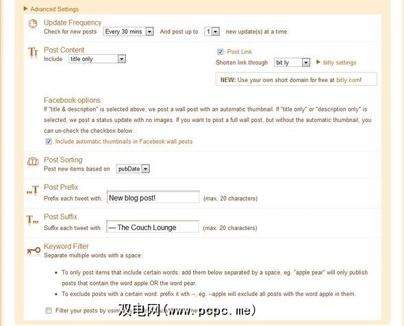 听起来我对Twitterfeed持否定态度,不应与“最佳"一词并列。仍然是一项出色的服务-它为三个最常见的社交网络提供支持,并具有许多高级设置,包括能够发布到Facebook Pages的功能,这一功能鲜为人知。
