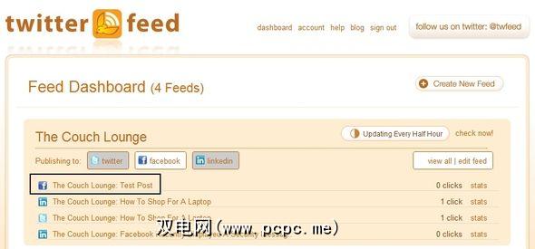 Twitterfeed可能是社交网络发布服务中最受欢迎的RSS feed。如果您不熟悉它,它将发布到Facebook,LinkedIn和(显然)Twitter。除了没有太多的发布目的地,Twitterfeed的工作方式与Dlvr.it略有不同-每个博客都有自己的feed(Dlvr.it称为路由)。因此,如果您有多个博客,则无论是否希望它们都发布到同一网络上,都可能需要花费更多时间。