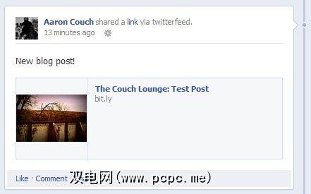 最后,我注意到从博客发布到发布的时间过长出现在Facebook上。我尝试刷新Twitterfeed以更快地获取Feed,但似乎并没有太大变化。我确实注意到了确保选择正确的设置来向Facebook发布帖子的重要性。下面是一个示例,该示例显示的是仅选择“仅标题",而不是选择“标题和描述"。