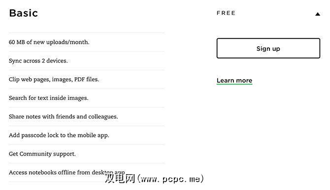 Evernote用户可以分为两级:基本版和高级版。 Basic是免费的,包括上述所有限制。对于非常轻量级的用户来说很好,但Evernote过去免费提供的功能列表中有一些明显的遗漏。