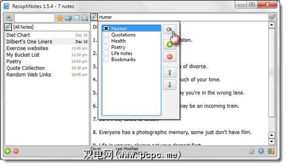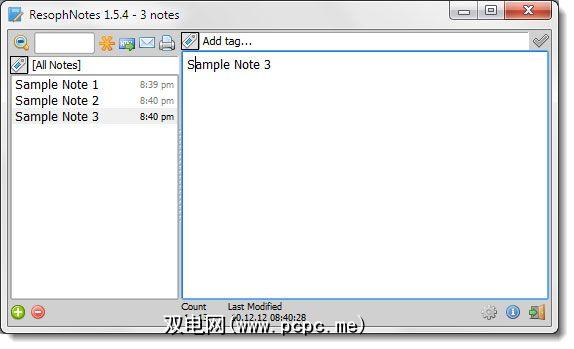 您不需要详细的帮助文件即可了解简单程序。只需开始编写您的第一个便笺,您就会看到第一行成为便笺的标题。您可以在每个标题旁边找出时间戳记,这也告诉我们ResophNotes会自动将最旧的注释放在顶部。您可以在每个音符中添加标签;带有大量注释的标签将帮助您组织类似的注释。