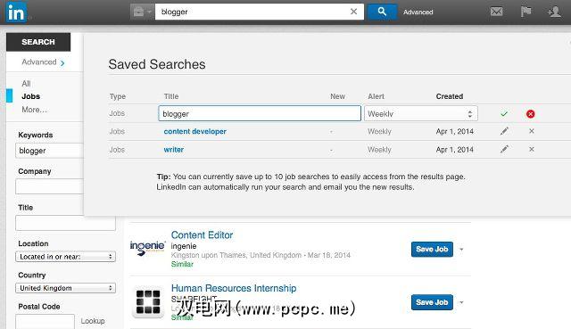 您可以做的最有用的事情之一就是保存求职信息,以便以后轻松返回。单击页面右上角的“保存搜索"以保存特定的搜索字符串。保存后,您可以每天,每周或每月收到有关新帖子的电子邮件警报。