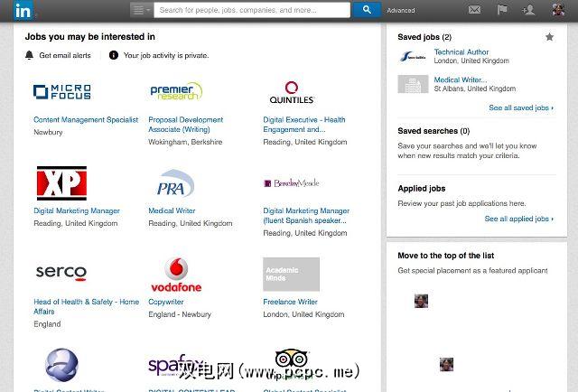 只需单击“作业"选项卡,您就会看到许多可以做的事情。您可以搜索工作,仔细阅读推荐的工作,然后保存要稍后查看的工作。您还可以使用高级搜索按位置和功能缩小潜在工作的范围。如果单击“更多选项",您将看到更多的过滤器。