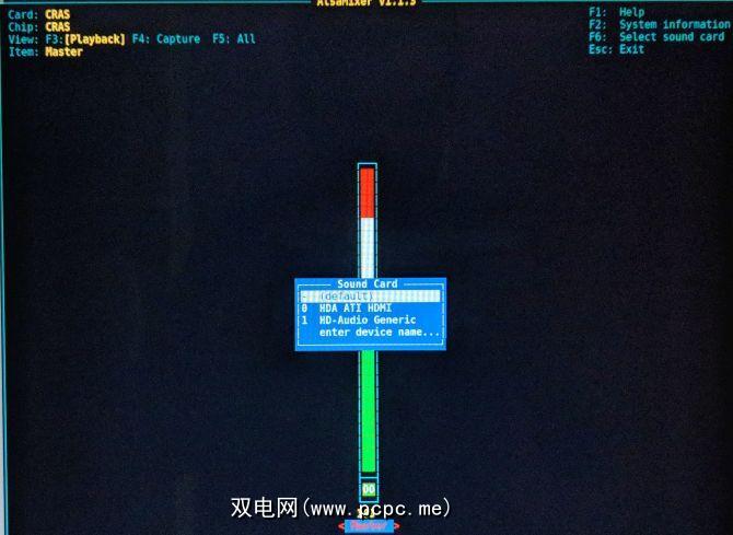 使用Alsamixer界面进行交易很繁琐。接口中的说明不正确,F键也不起作用。