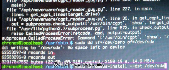 键入以下命令,以便将Chrome操作系统安装到计算机的存储驱动器中: