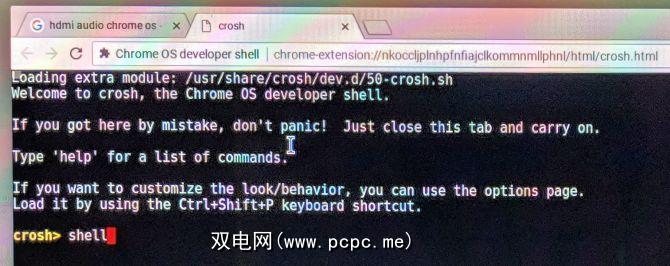 shell这将带您进入外壳,允许用户从命令行更改Linux设置。您可能需要输入密码和/或登录名。登录名是 chronos ,密码是 chrome 。