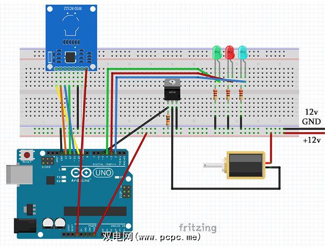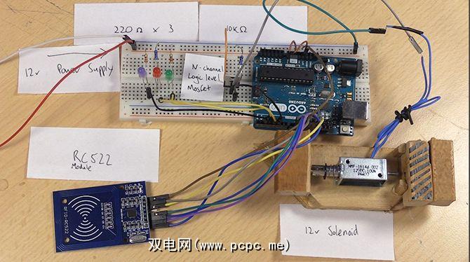 最后一次快速查看一下接线以检查是否一切正常到位,然后连接12v电源。在这一点上,值得一提的是,您应该警惕螺线管的占空比。我为此测试使用的便宜的螺线管没有100%的占空比,因此不应将其长时间放置在锁定位置。要使其成为永久设置,请使用占空比为100%的螺线管。更好的是常闭(NC)电磁阀,在不通电时仍保持锁定状态。这也意味着任何想绕过系统的人都不能简单地拔掉它的电源!