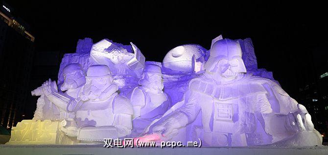这座令人难以置信的雕塑由3500吨雪组成,尺寸为25米宽15米高。该景点获得了迪士尼的批准,并花了一个月的时间才使士兵们完成。