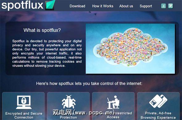 这是免费的,基于云的VPN /代理服务。 Spotflux与其他VPN /代理服务的不同之处在于,它们“ ...进行数百万次实时和自动计算,以从Internet通信中删除跟踪cookie,恶意病毒和其他令人讨厌的事物……"。