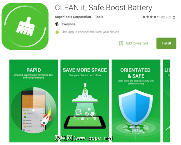 它是什么:另一个非常流行的“速度提升器,电池节省器和电话优化器"。它拥有6亿用户和2千6百万条五星级评论。