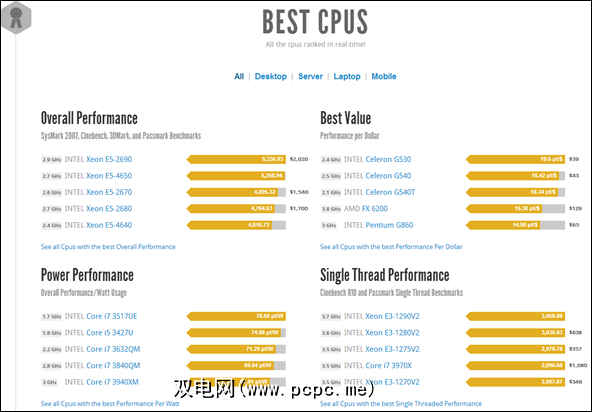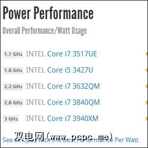 只需向下滚动CPU Boss主页面即可显示丰富的信息。的确,如果您不熟悉CPU领域,甚至可能会感到不知所措。但是,如果您要使用笔记本电脑,则可能需要查看“电源性能"类别,以绘制总体性能与瓦数(影响电池寿命)的图表,或者“最有价值"类别,以最便宜的CPU电源购买。 p>