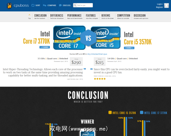 CPUBoss提供的一个有趣的选择是比较两个特定的处理器: