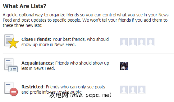 如果管理每个单独的朋友似乎有点过多,则可以使用解决方法。如上所述,Facebook的功能是少见某些人。当Facebook发现您与某些人的互动不多时,您可以将其移至相识列表,然后在新闻源中看到较少的更新。