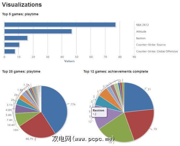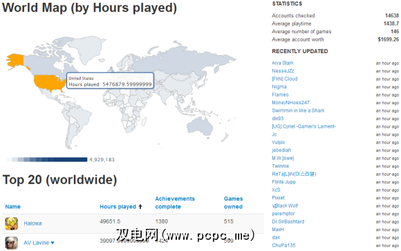 个人资料,游戏和成就页面提供了Steam各个领域的全局统计信息。