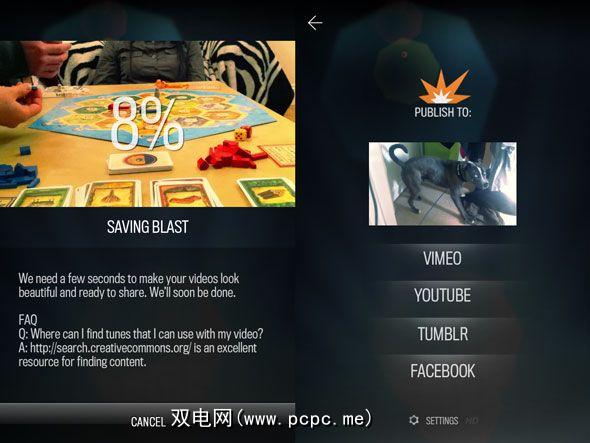 提供了Vimeo,YouTube,Tumblr和Facebook共享选项,所以我再次上传到YouTube和必须先授权访问我的帐户。一个不错的感觉是上传是在后台完成的,因此如果您还有其他“爆炸"要制作,则可以同时使用该应用。