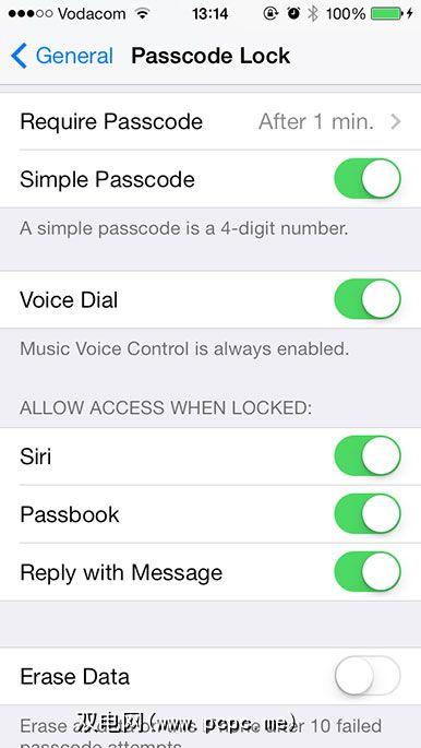 您还应该避免使用诸如1234或0000之类的通用密码(这是一个可以避免的不错的列表),尽管请记住,只有9999个简单的密码可供选择。如果您真的很担心,可以从“设置">“常规">“密码锁定" 菜单中停用4位数字密码,然后选择更长更复杂的密码之一。而且,如果您打算拆掉锡纸帽子,请将手机设置为在同一菜单上尝试10次错误密码后就擦除所有数据。