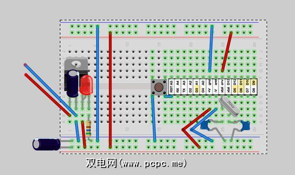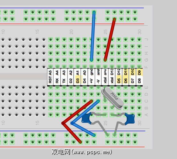 如果您背负现有的Arduino对芯片进行编程(稍后描述),您也可以将电源导轨直接连接至+ 5V