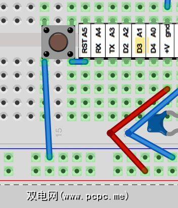 最后,我们只需要一个重置开关–幸运的是,这一点非常简单;但请注意,在某些教程中,您会发现添加了下拉电阻。我相信这是ATMega168而不是368所需的。