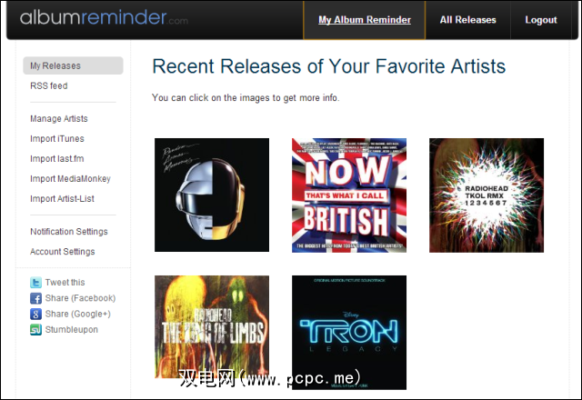 某些服务还提供了额外功能。例如,当您最喜欢的一位艺术家来您所在的城市参加音乐会时,TuneViper还将通过电子邮件发送给您。 “专辑提醒"甚至允许您从iTunes资料库中导入艺术家列表,因此您可以快速启动并运行。