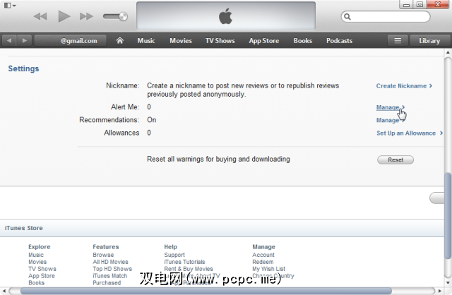 Configure your alert settings on this page. iTunes will send email alerts to the email address associated with your account.