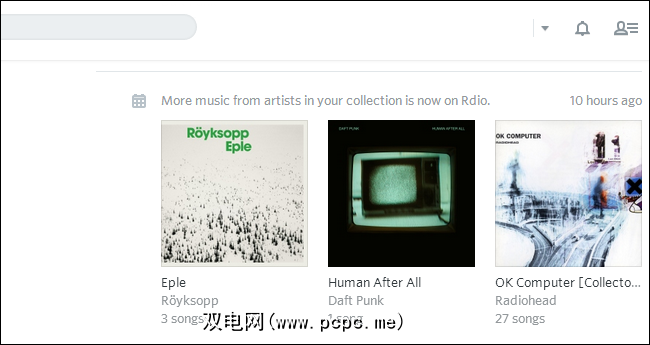 如果您使用全部-您可以收听Spotify或Rdio之类的音乐流媒体服务,您的服务可能具有内置警报,用于提醒您已经听过的新歌手。例如,Rdio会向您显示您已向其添加音乐的艺术家发布新专辑的通知。