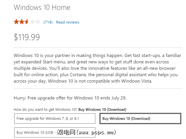 如果您查看了上述情况,并决定仍然不想接受免费升级优惠,那么您会发现价格7月29日之后在Windows 10上的价格为119美元。还有Windows 10 Pro,价格为199美元,但是Pro的额外功能并不真正值得花费。