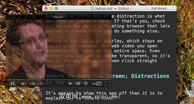 macOS Sierra中的一个小而有用的功能是,当您在其他窗口中工作时,可以在桌面上的一个小窗口中播放视频。虽然原生集成很不错,但已经有一个名为Helium的免费第三方应用程序可以出色地做到这一点。