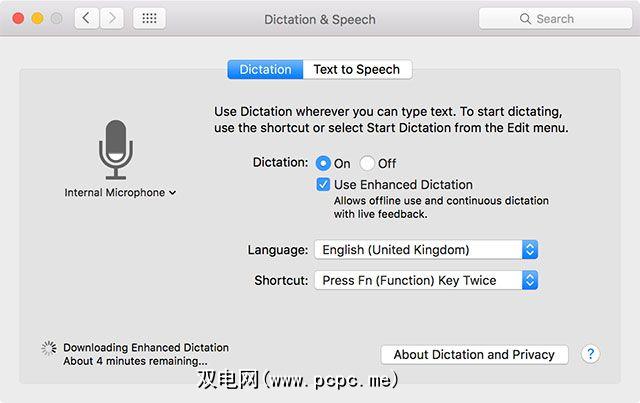设置起来很容易-只需进入系统偏好设置>听写和语音,并同时启用听写和使用增强听写。您需要等待大约500MB的下载完成,然后转到系统偏好设置>辅助功能>听写进行设置。您甚至可以在此选项中将计算机的关键字词组更改为Siri。